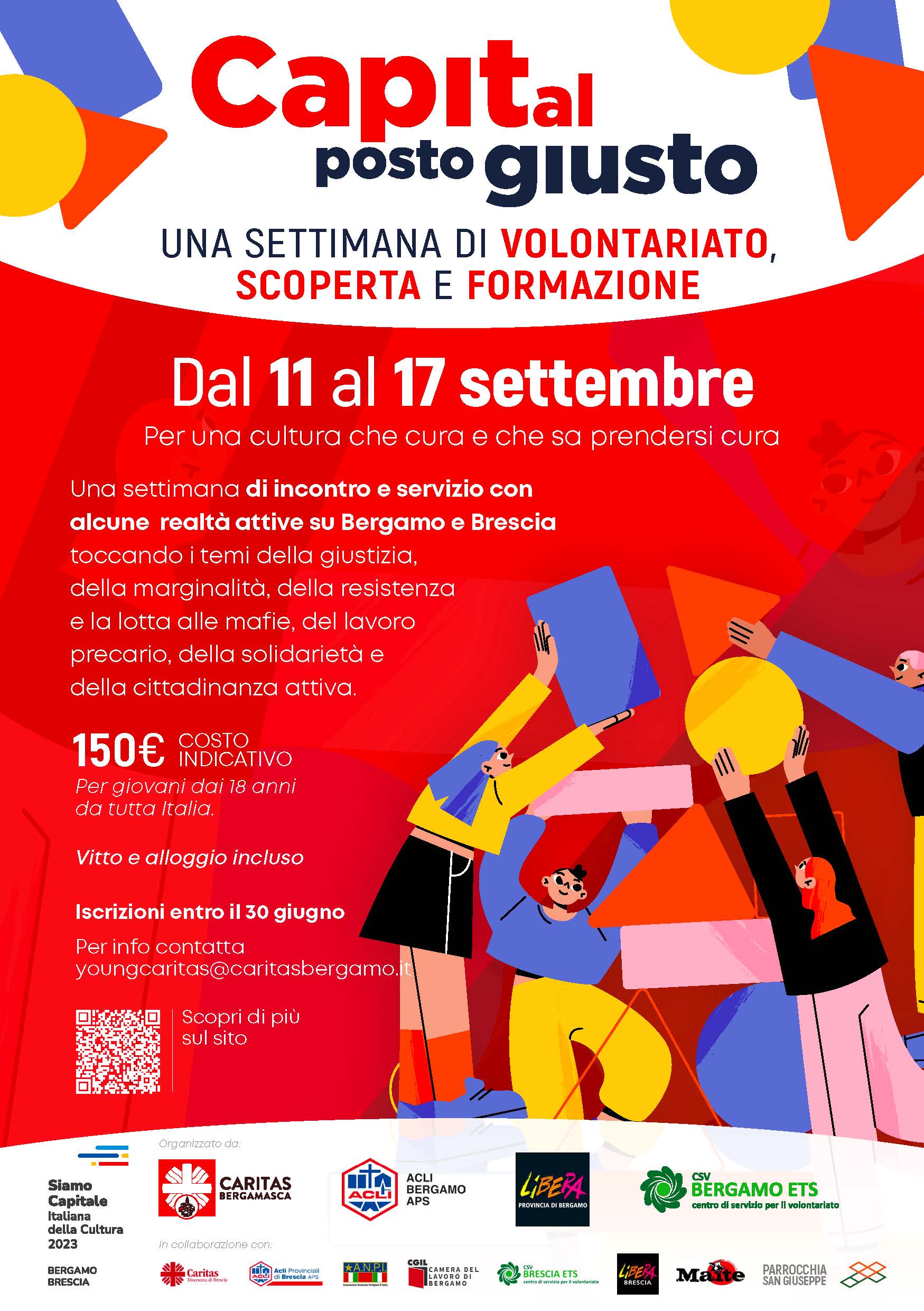 Rieccoci con un’altra bella opportunità offerta a tutti i giovani dai 18 anni in su. Si tratta della possibilità di partecipare a un campo di volontariato, scoperta e formazione tra Bergamo e Brescia realizzato in occasione dell’anno della Capitale della Cultura 2023, in collaborazione con ACLI Bergamo, Libera Bergamo e CSV Bergamo.