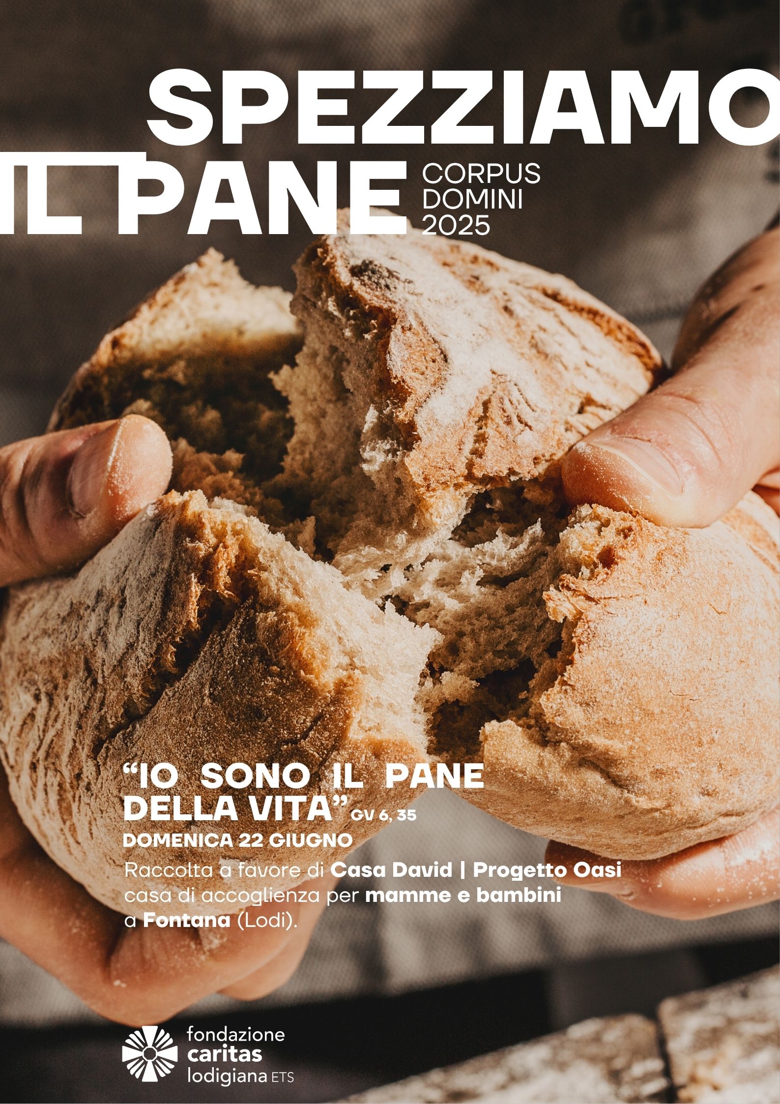 Spezziamo il Pane 2025 – 23° edizione – domenica 22 giugno, solennità del Corpus Domini. La solennità del Corpus Domini, che celebra la presenza di Cristo nell’Eucaristia, è profondamente legata alla carità.